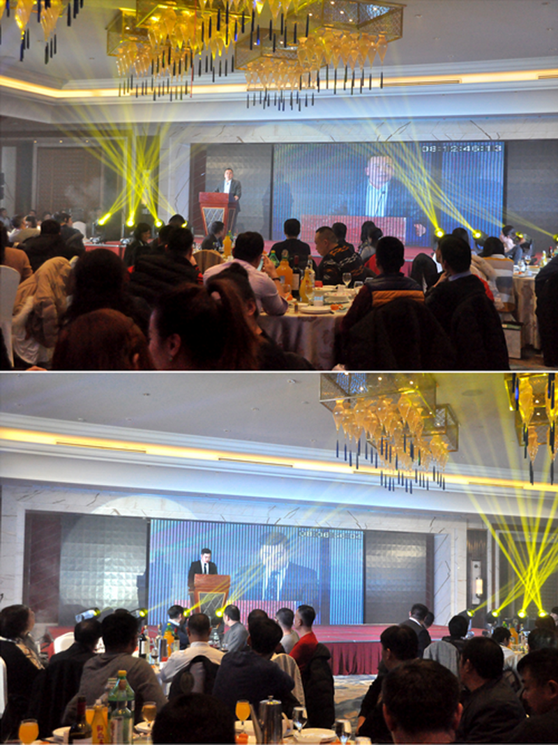 一场精彩的灯光秀拉开了晚会的序幕,董事长黄郁彬先生、山东公司总经理石凯成先生为年会致辞。