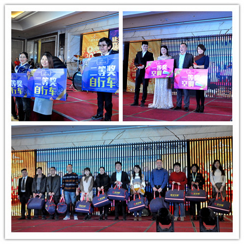 晚会最让大家高兴的就是抽奖环节了,公司为各位家人准备了丰厚的奖品,毛毯、骑行车、空调,各位领导用财富的双手将幸运带给家人们。