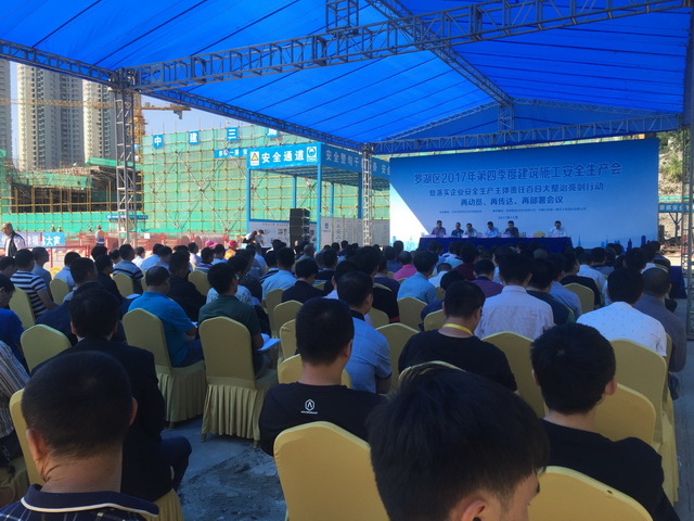 2017年11月1日泰丰贝悦汇项目公司受邀参加由深圳市罗湖区住房和建设局举办的“罗湖区2017年第四季度建设施工安全生产会”。