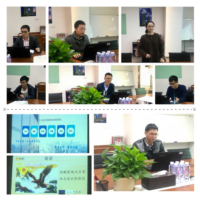 述职人员分别从“2017年工作总结、工作重难点剖析、改进措施、心得体会及2018年的工作计划等”几个方面进行了述职汇报。大家的述职报告精彩纷呈;有人用数据说话标明这一年的业绩,有人用照片见证这一年的工程进度,有人融入诗词对工作进行总结展望,有人用大鹏展翅对新一年的期望。